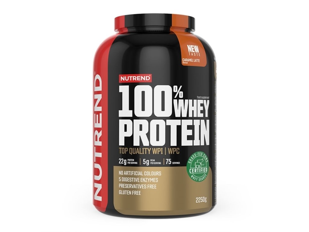 příchuť karamelové latté: 80 % syrovátkový proteinový koncentrát (obsahuje slunečnicový lecitin a protispékavou látku fosforečnan vápenatý), 13,5 % syrovátkový proteinový izolát (obsahuje slunečnicový lecitin), aroma, bezlepková pšeničná vláknina, stabilizátory akáciová a xanthanová guma, barvivo E 150c, protispékavá látka oxid křemičitý, chlorid sodný, směs trávících enzymů Digezyme® (amyláza, proteáza, laktáza, lipáza a celuláza), sladidla sukralóza a steviol-glykosidy. Může obsahovat stopy sóji.