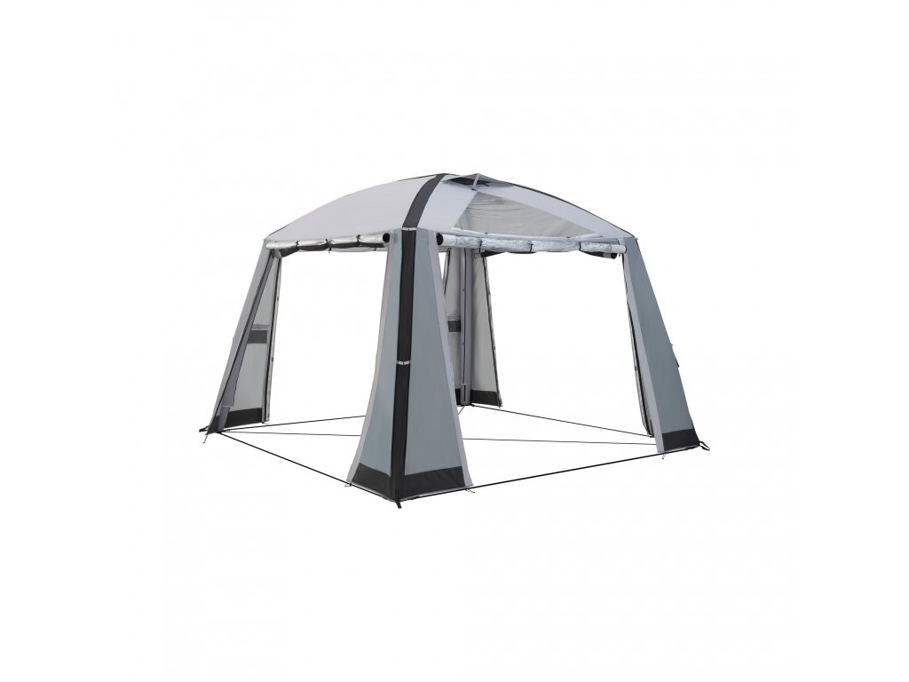 Součástí balení jsou sluneční zástěny a tyčky ke dveřím, které umožňují vytvořit uzavřenější prostor pro větší soukromí nebo ochranu před hmyzem, větrem či deštěm.