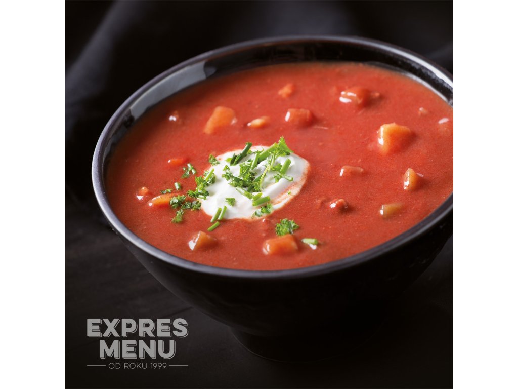 Složení: hovězí vývar (voda, hovězí maso a kosti), hovězí maso přední, rajčatový protlak (voda, rajčatový protlak, sůl), zelí hlávkové, červená řepa sterilovaná (červená řepa, voda, ocet, cukr, sůl, aroma), vepřové maso (plec), smetana, rýžová mouka, kukuřičná mouka, kořenová zelenina (mrkev, celer, pastinák, petržel), brambory, cukr, cibule, uzená slanina (vepřové sádlo), citron, sůl kamenná, paprika mletá, bobkový list.