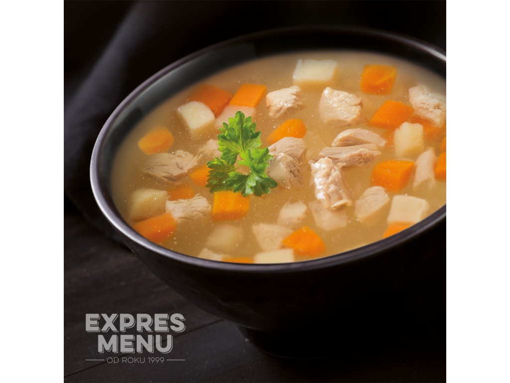 Základem polévky je pomalu tažený vývar s kvalitní kořenovou zeleninou a kousky libového kuřecího masa. Polévku můžete doplnit nudlemi, vašimi oblíbenými polévkovými těstovinami nebo kapáním (zavářkou). Jeho sílu oceníte i při nachlazení nebo jen jako rychlou svačinu.