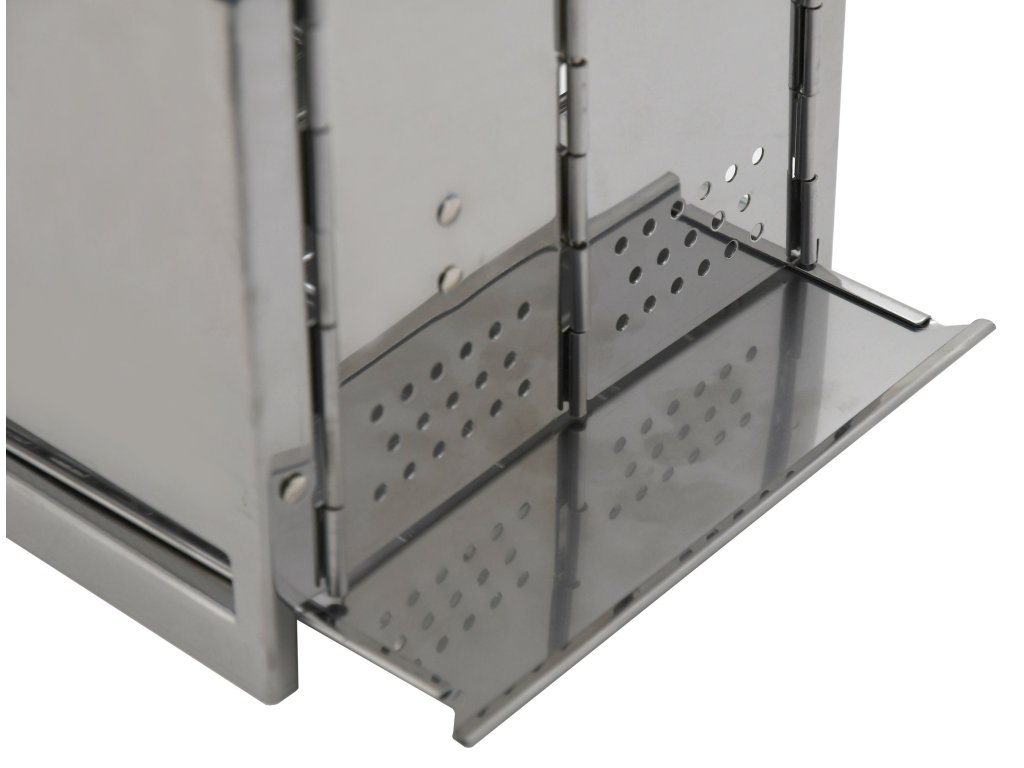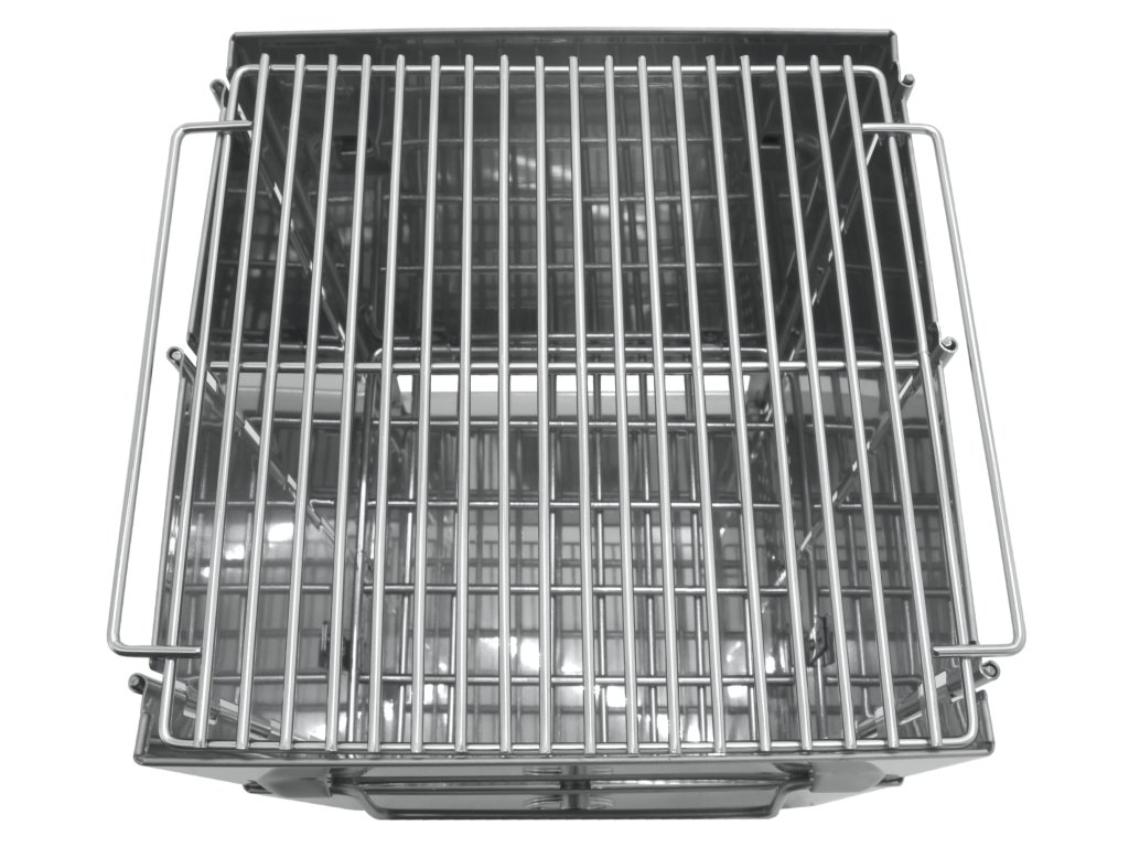 Pro tepelnou přípravu pochutin je gril opatřen ocelovým roštem 20 x 20 cm. Ventilace ve spodní části konstrukce zajistí plynulý přísn vzduchu. Ve spodní části je rovněž umístěn vysouvací popelník pro snadné vysypání zbytků uhlí.