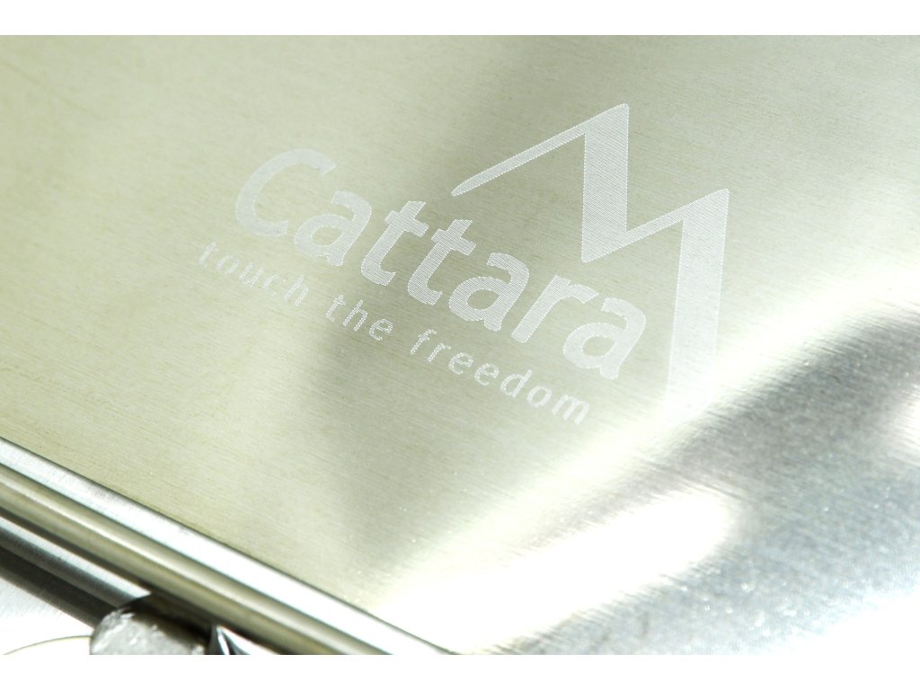 Konstrukce je vyrobena z kvalitní nerezové oceli s lesklým povrchem. Stabilita je zajištěna složením konstrukce. Rozměry grilu 22 x 21 x 27 cm.