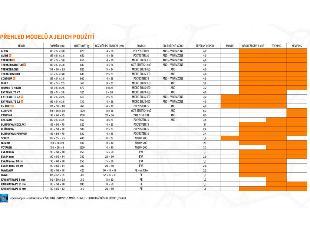 Nízký tepelný odpor (R-value 1,2) – vhodná pro teplejší období