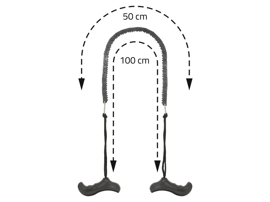 Díky ergonomicky tvarovaným madlům a kvalitnímu ocelovému řetězu lze jednoduše několika tahy uříznout větev i kmen stromu. Délka ozubené části je 50 cm, celková délka pilky od rukojeti k rukojeti je 100 cm.