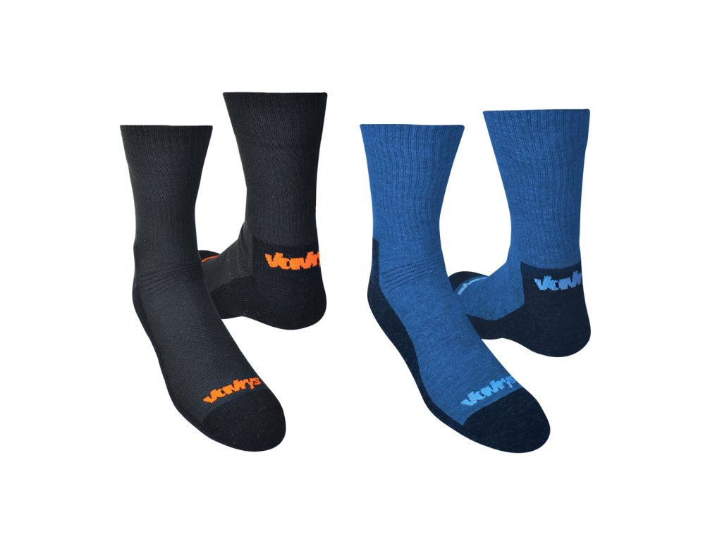Výhodné balení 2 párů inovovaného provedení léty osvědčeného modelu Vavrys TREK COOLMAX s vysokým podílem polyesterového funkčního vlákna CoolMax a vlny.