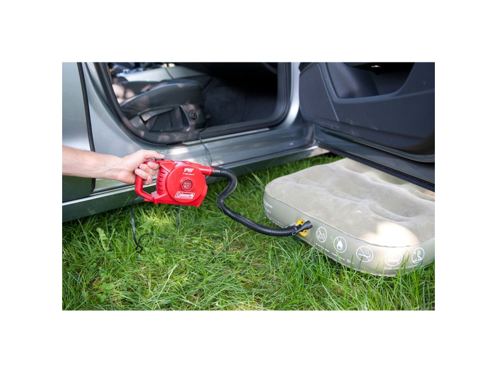 Pumpa Coleman 12V QuickPump vhodná pro nafukování a vyfukování matrací napájená přes 12V autozapalovač. Dodáváno včetně transportního obalu, s 275 cm dlouhou elektrickou šňůrou a nástavci na různé tipy ventilů.