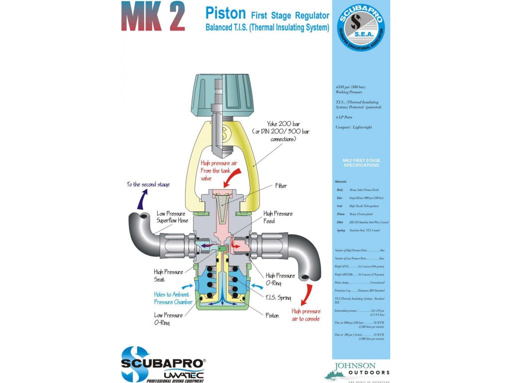 MK2 EVO je navržen tak, aby jeho vysoká spolehlivost, minimální požadavky na údržbu (levnější servis), špičkový výkon a dlouhá životnost vyhovovaly jak začátečníkům tak i profesionálním potápěčům.