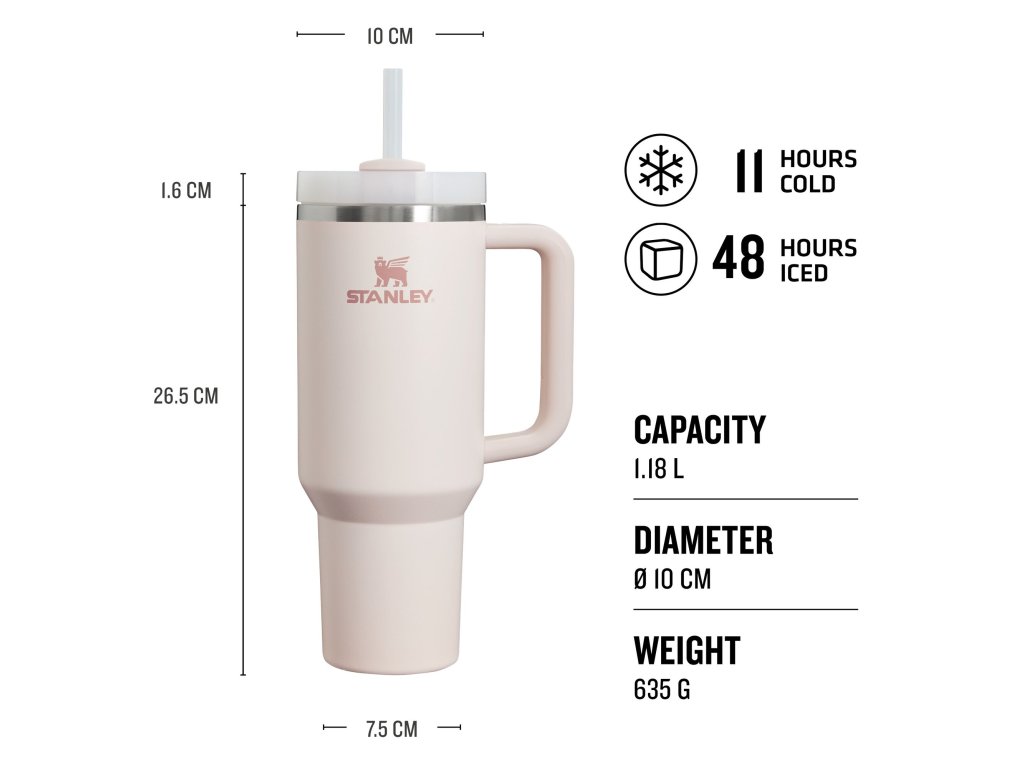 Stanley Quencher H2.0 v jemné růžové barvě Rose Quartz je ikonický termohrnek, který dobyl svět. Velký, odolný, krásný a must-have pro každou příležitost – přesně takový, jaký si zamilujete hned na první doušek. Ať už jdete do práce, na jógu, piknik nebo víkendový výlet, Quencher je váš dokonalý parťák.