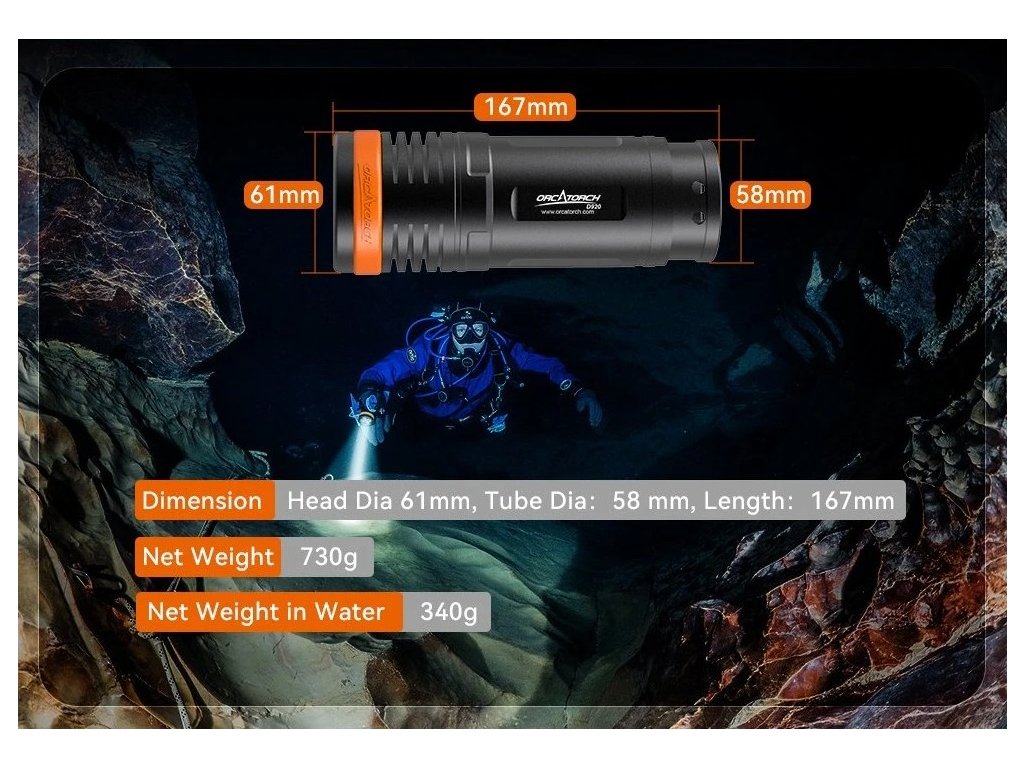 OrcaTorch D920 je dokonalým spojením výkonu, bezpečnosti a praktičnosti – spolehlivý partner pro vaše hlubinné mise.
