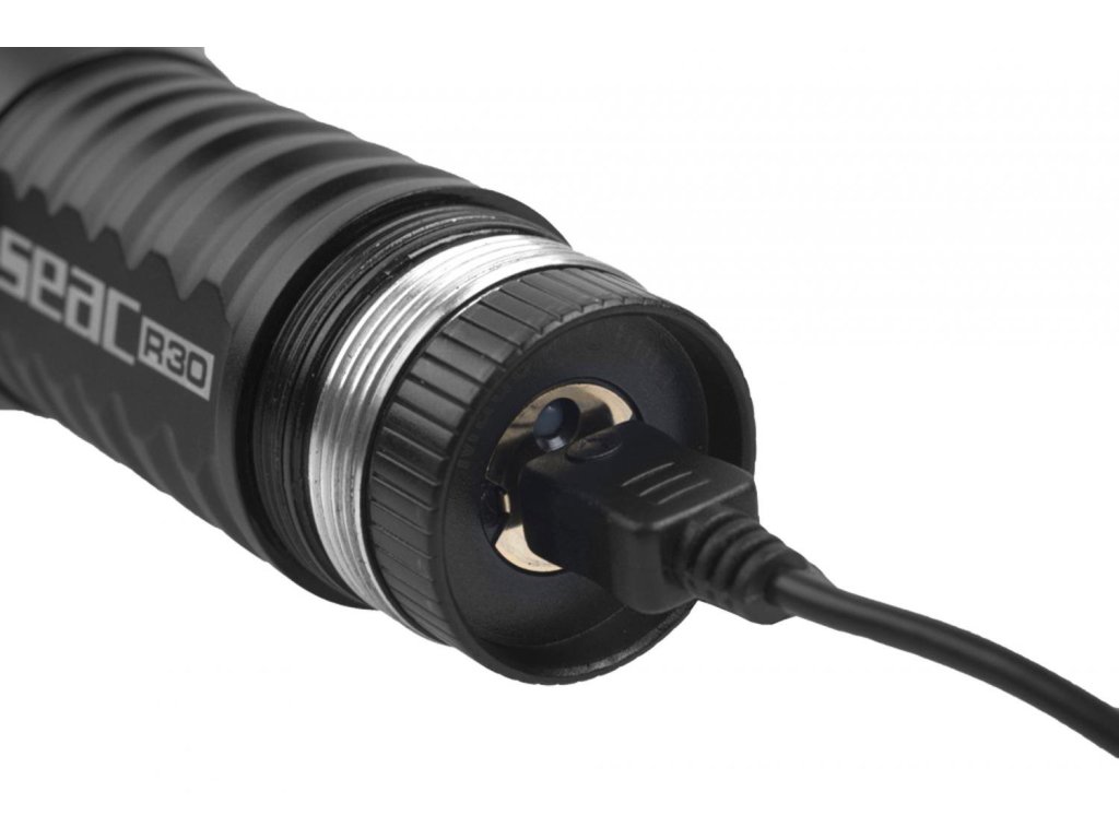 Svítilna R30 od firmy SeacSub, je vybavena magnetickým zoomem, který umožňuje regulaci světelného kužele, je vybavena zámkem proti náhodnému spuštění a nabíjení je řešeno přes USB, takže nepotřebujete vozit sebou žádnou objemnou nabíječku.